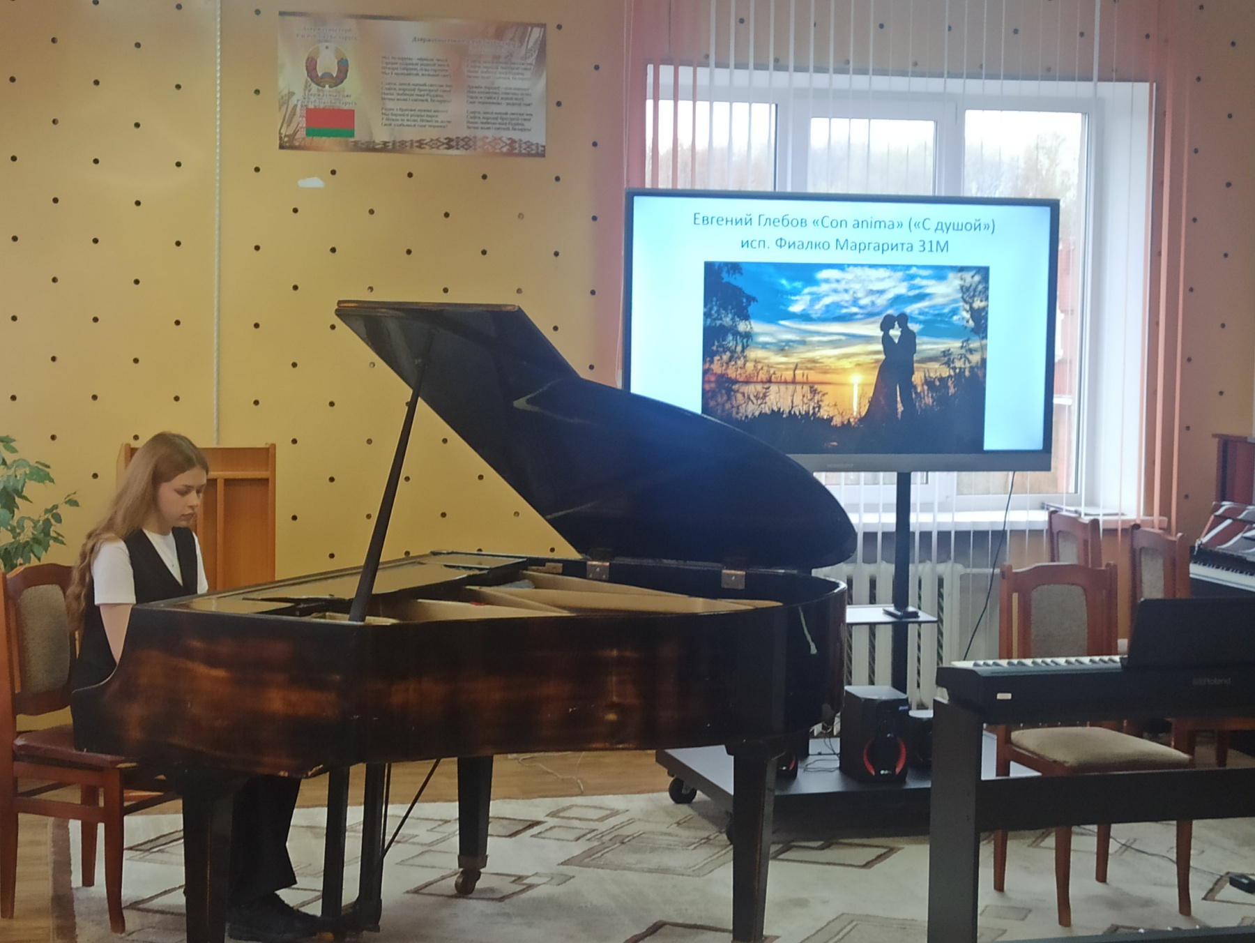 В концертной программе приняли участие учащиеся группы 31М: Шаппо Валерия, Ермашкевич Анастасия, Фиалко Маргарита, Захаренкова Вера и Альхимович Дарья. Они продемонстрировали высокий уровень подготовки, артистизм и искреннюю любовь к своей профессии, достойно представив специальность «Музыкальное образование».