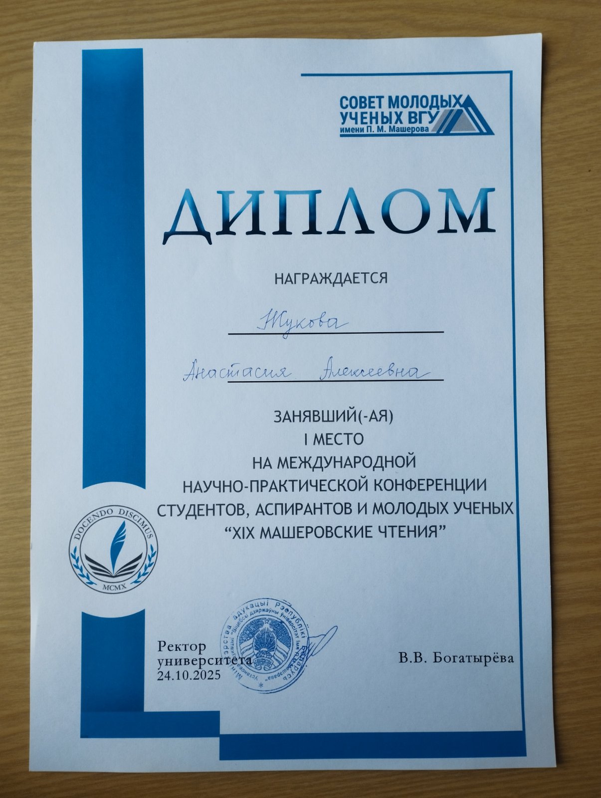 Учащаяся 2- го курса специальности "Начальное образование" Жукова Анастасия завоевала диплом 1-ой степени!