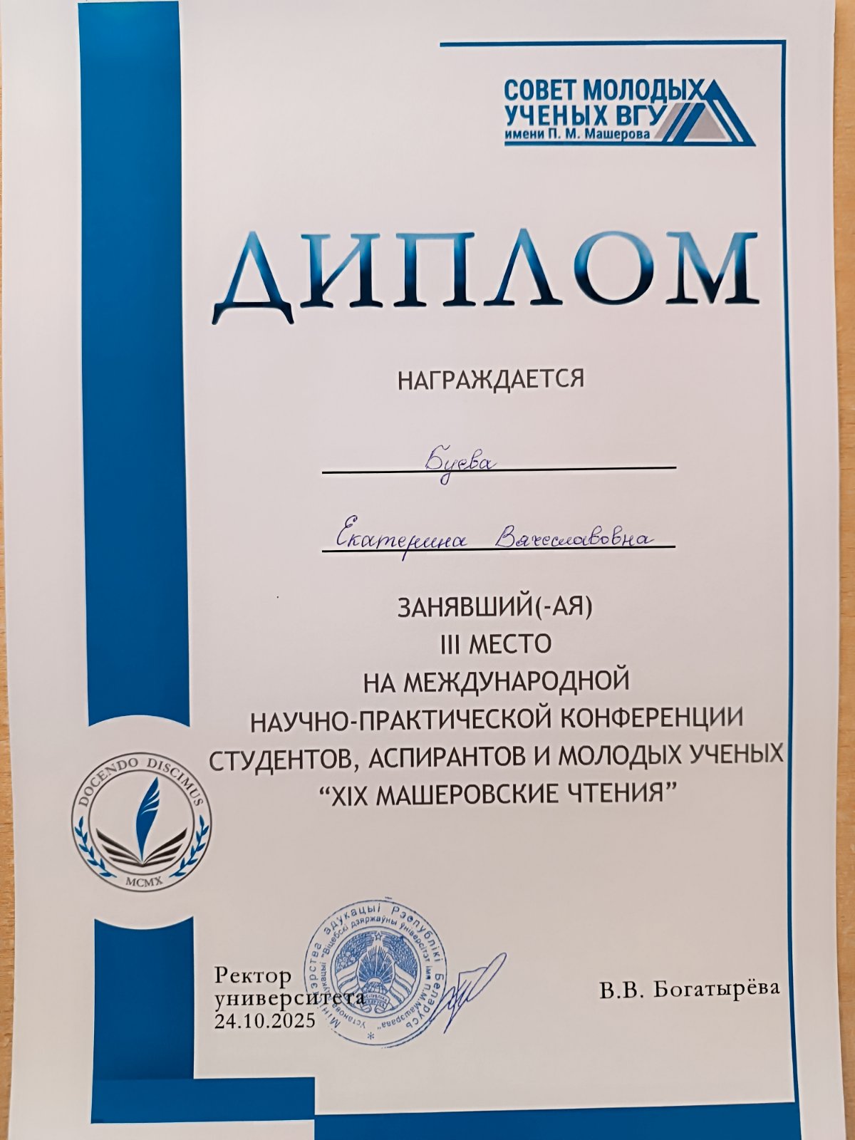 24 октября в УО "Витебский государственный университет имени П.М.Машерова" состоялась международная научно-практическая конференция студентов, аспирантов и молодых учёных "XIX Машеровские чтения".
