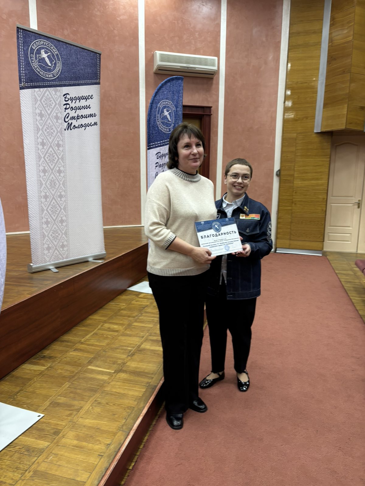 Трудовой семестр-2025 завершился! 5 ноября на торжественном мероприятии Полоцкий районный комитет ОО «БРСМ» отметил Благодарностью: