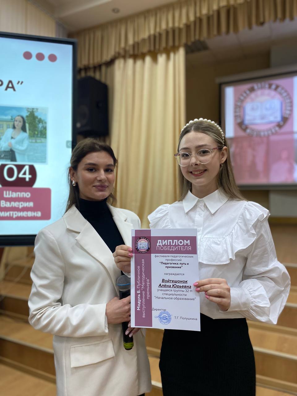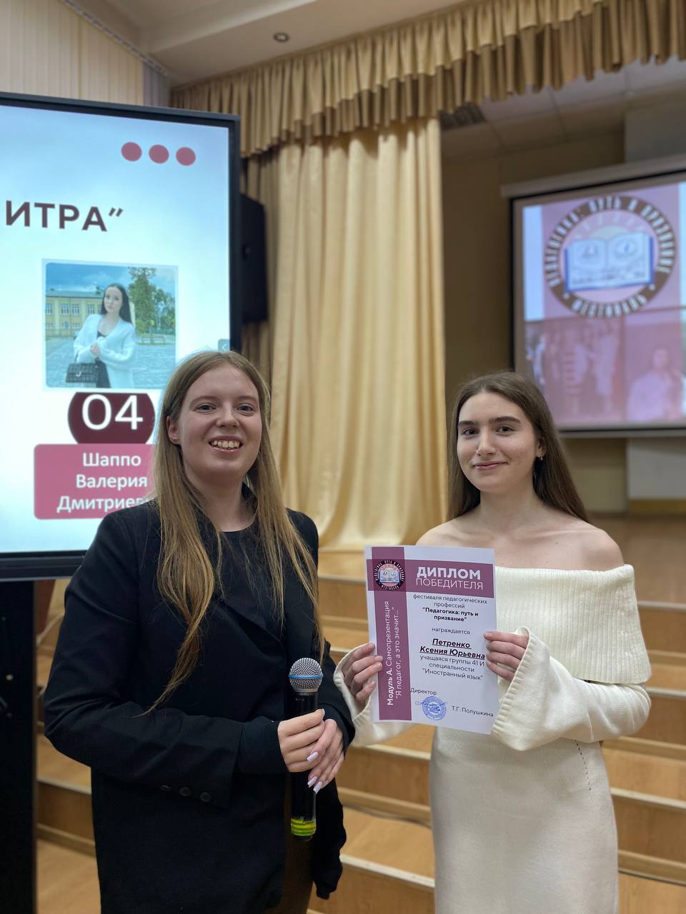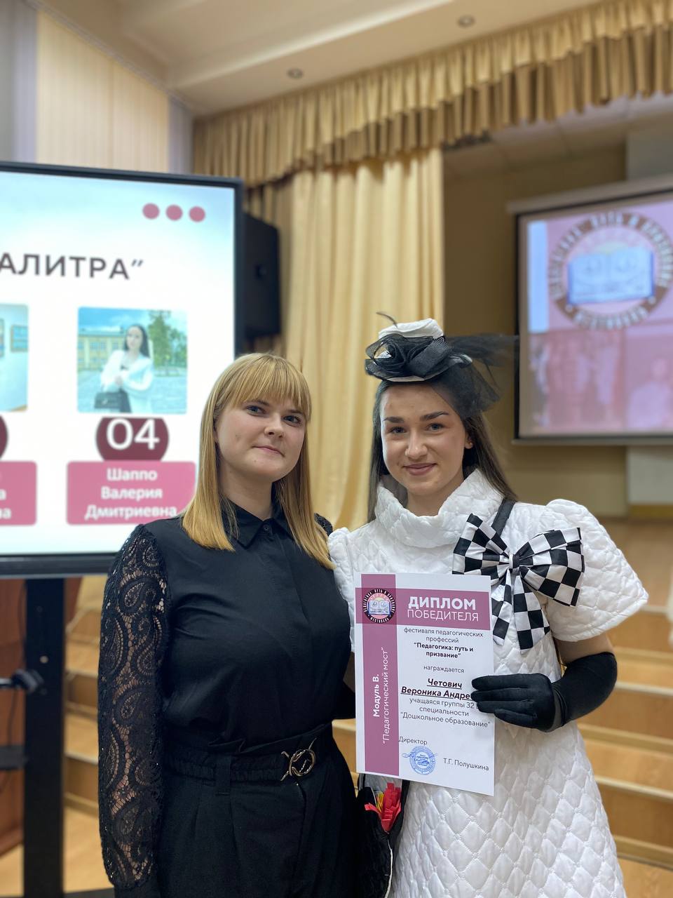 Шаппо Валерия Дмитриевна, учащаяся группы 31М специальности «Музыкальное образование» - Диплом победителя в номинации «Педагогическая палитра» - демонстрация творческих способностей в выбранной форме художественного самовыражения.