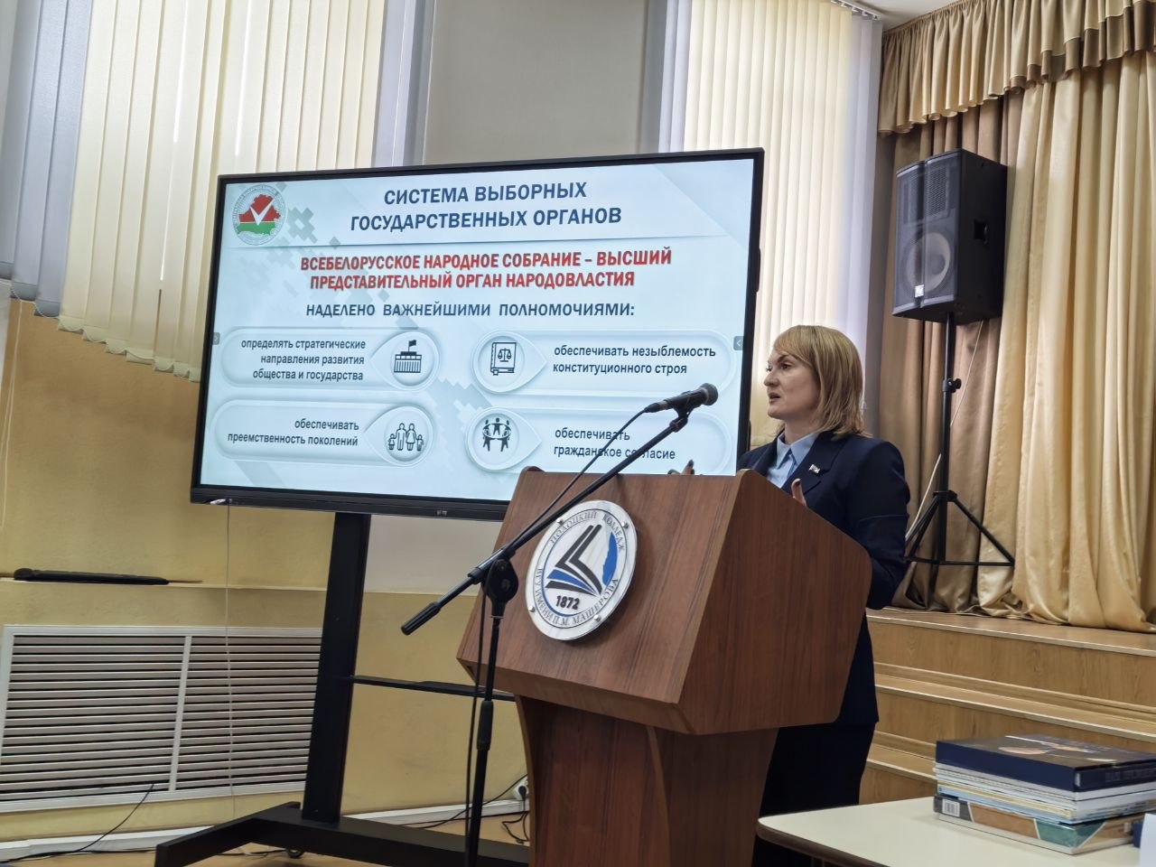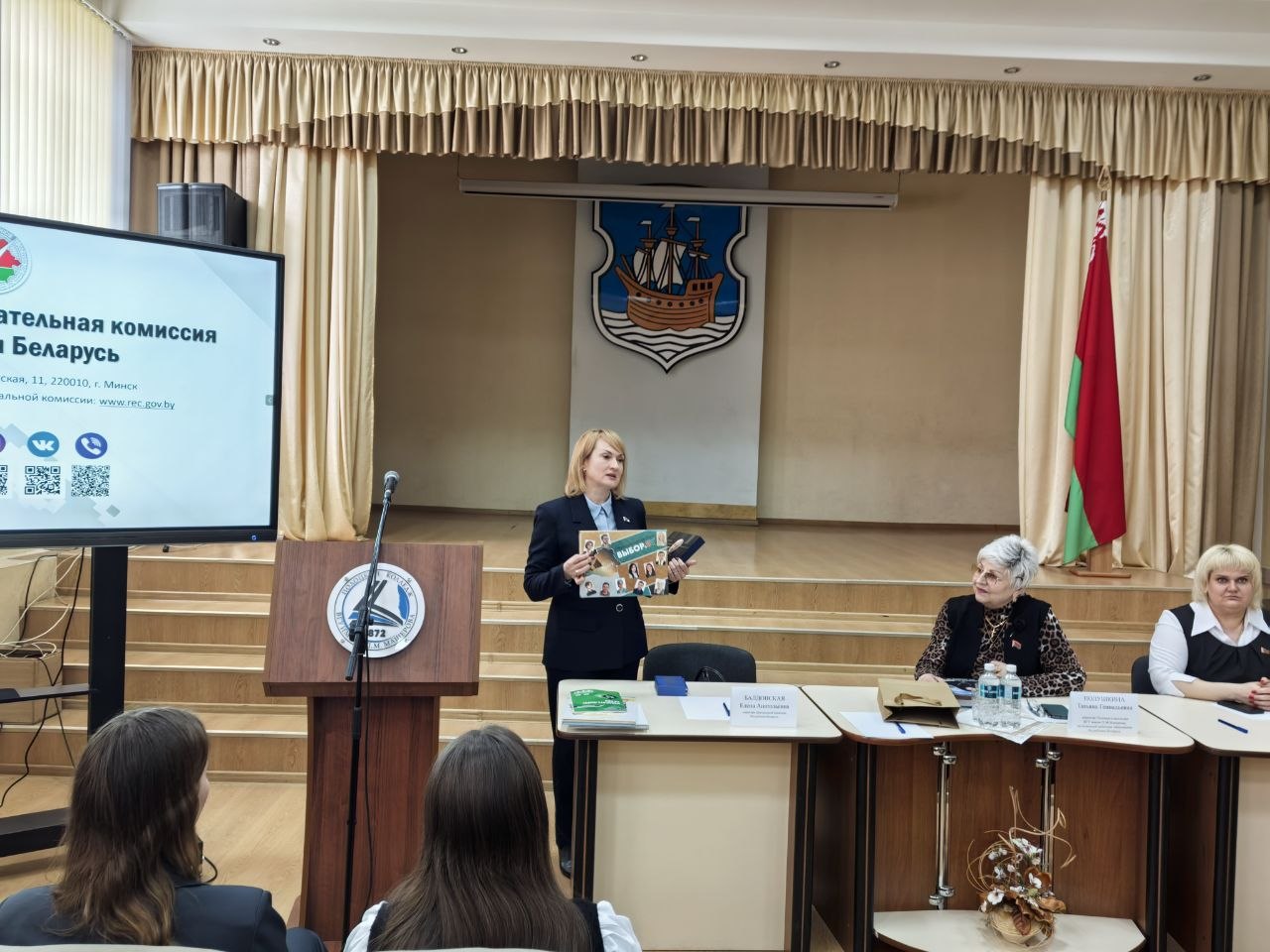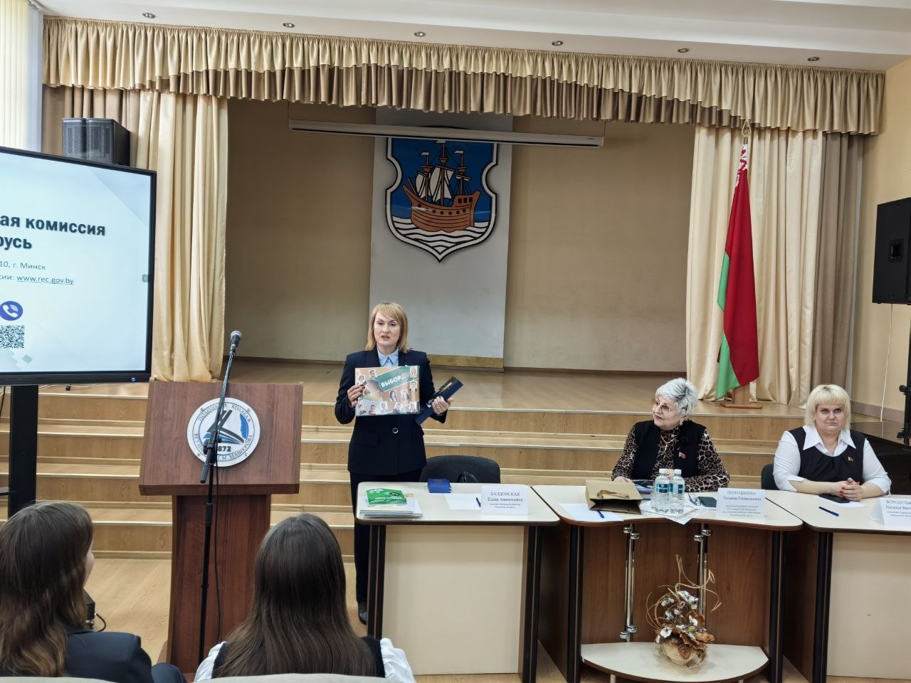17.04.2026 в Полоцком колледже ВГУ имени П.М.Машерова состоялась встреча с секретарём Центральной избирательной комиссии Республики Беларусь Еленой Анатольевной Балдовской по теме «Правовая перезагрузка: что надо знать сегодня».