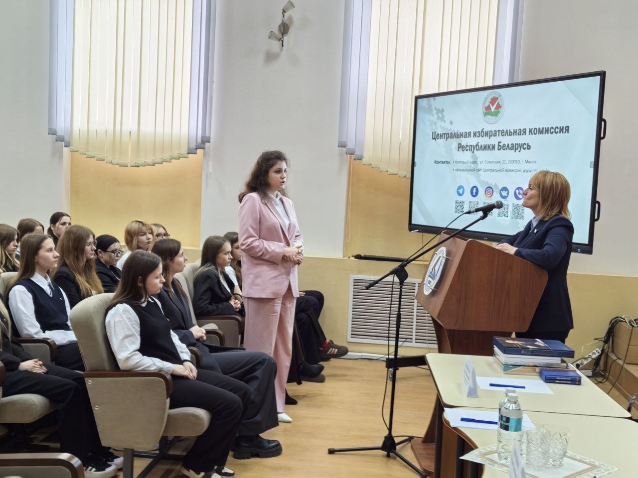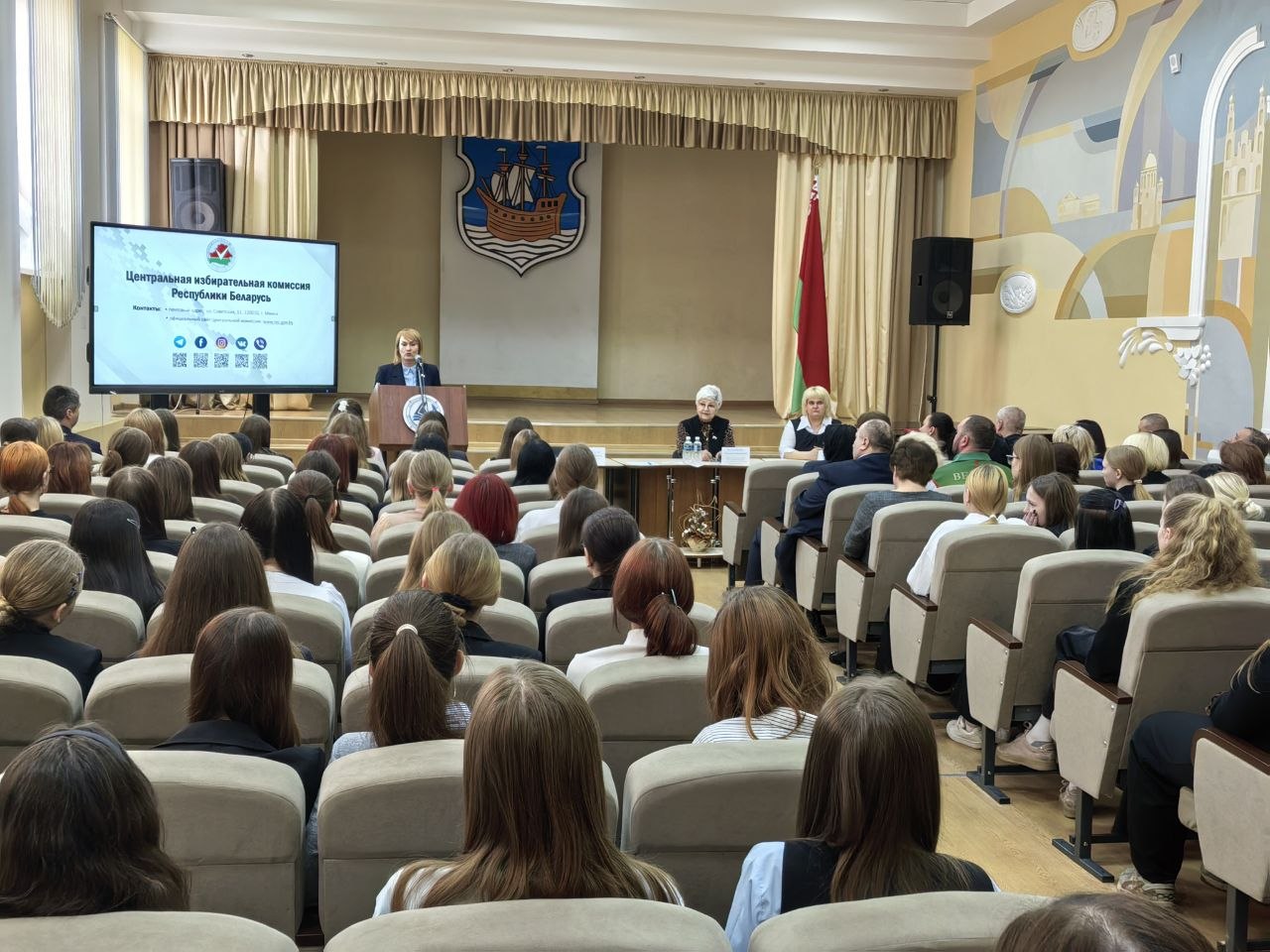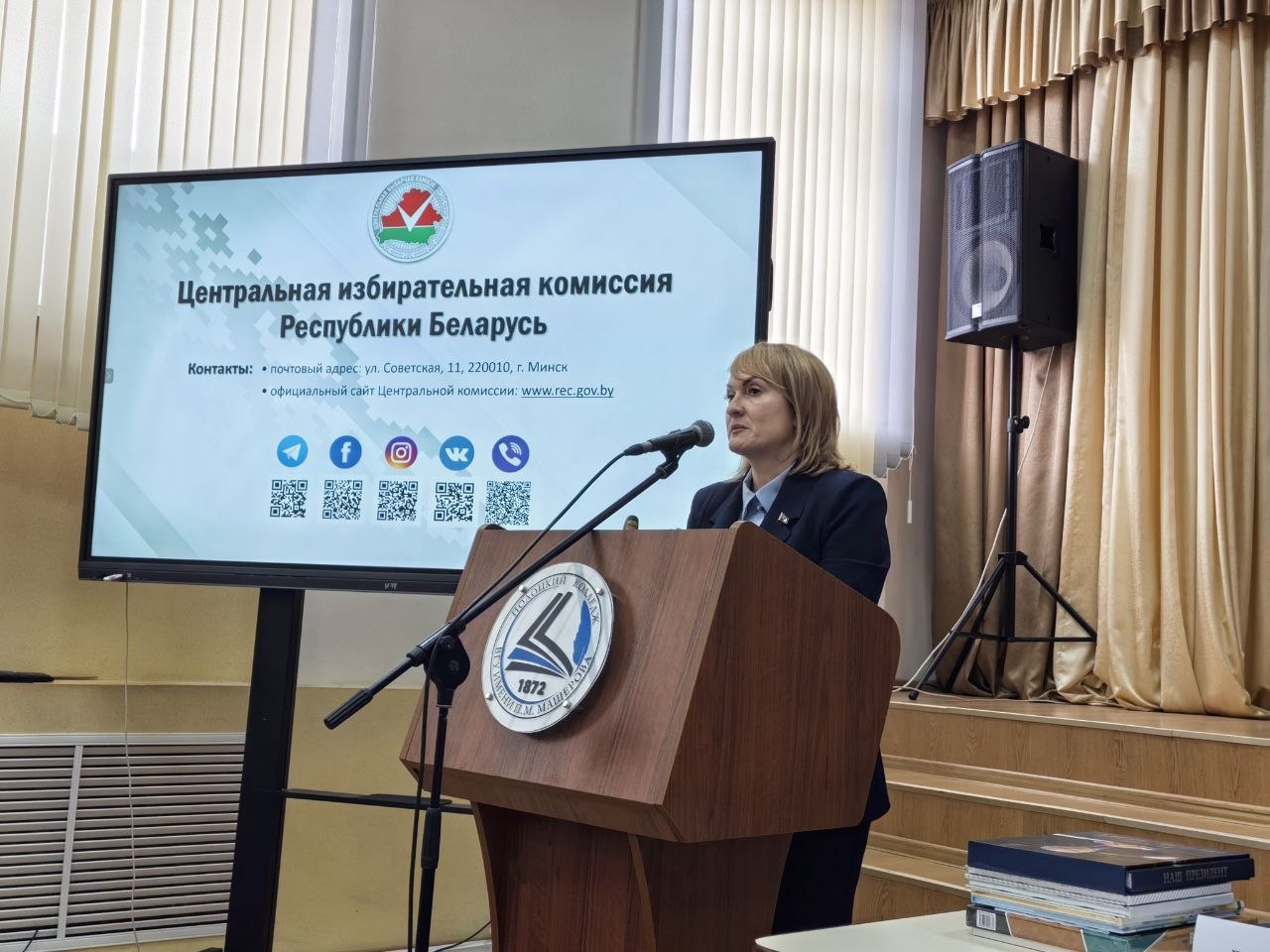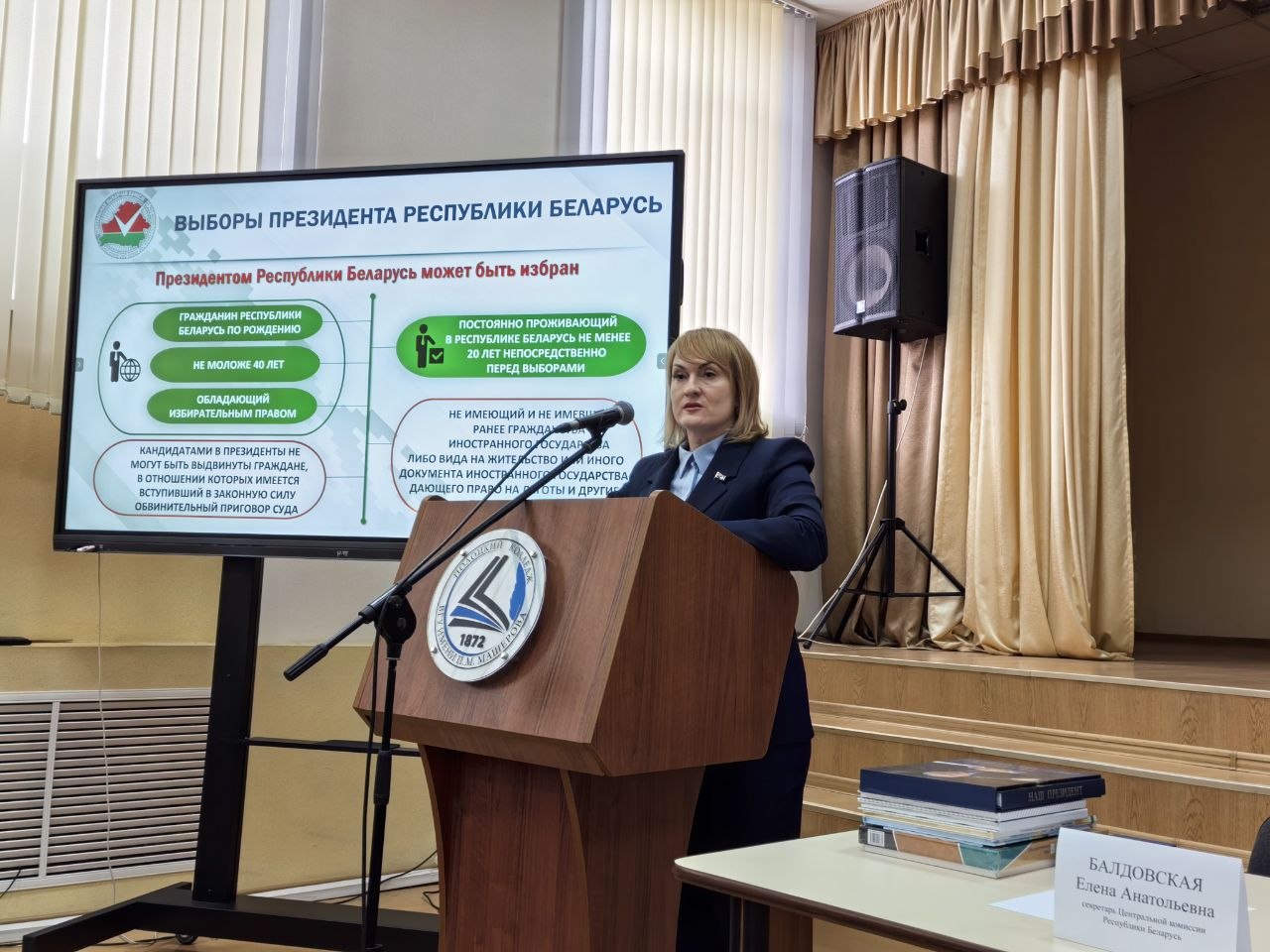 17.04.2026 в Полоцком колледже ВГУ имени П.М.Машерова состоялась встреча с секретарём Центральной избирательной комиссии Республики Беларусь Еленой Анатольевной Балдовской по теме «Правовая перезагрузка: что надо знать сегодня».