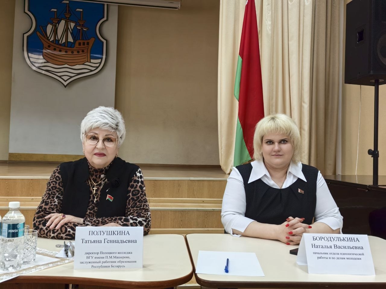 🎓 В мероприятии приняли участие директор колледжа, заслуженный работник образования Республики Беларусь Полушкина Татьяна Геннадьевна, начальник отдела идеологической работы и по делам молодежи Полоцкого райисполкома Бородулькина Наталья Васильевна, а также руководство, учащиеся и трудовой коллектив колледжа.