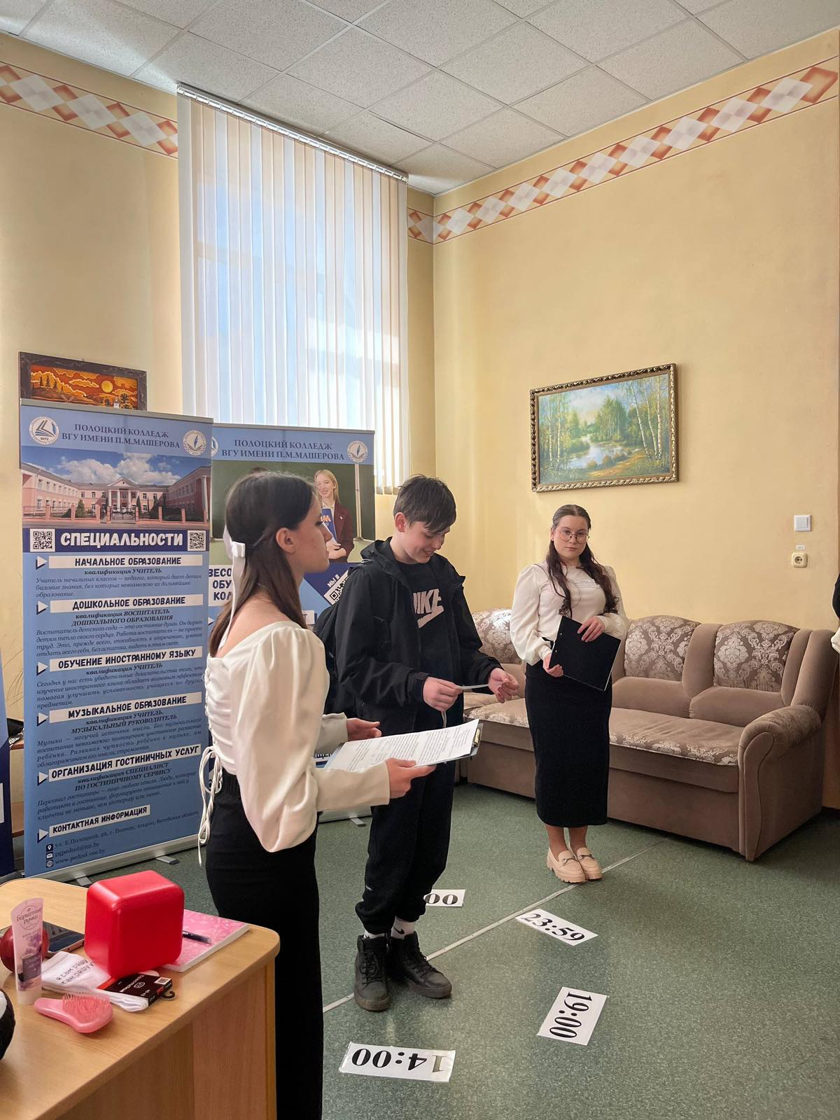 Музыкальное приветствие: шоу-группа «Арт-бум» (рук. В.Н.Ушак), творческая мастерская «Звуковая палитра» (рук. А.В.Скороход), студия эстрадной песни «Падабайка» (рук. Ю.В.Жарова), знакомство с правилами приёма в колледж «Выбери свою дорогу», встреча с руководством колледжа.